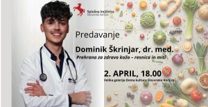 Predavanje bo osredinjeno na pomen antioksidantov, maščobnih kislin in vitaminov za kožo ter vpliv prehrane na akne, staranje kože in druge vnetne dermatoze. Obravnavane bodo tudi najpogostejše zmote o prehrani in koži, na primer trditve, da čokolada povzroča akne. Posebna pozornost bo namenjena pomenu dodajanja vitamina D ter vlogi uravnotežene prehrane in prehranskih dopolnil pri zdravju kože.